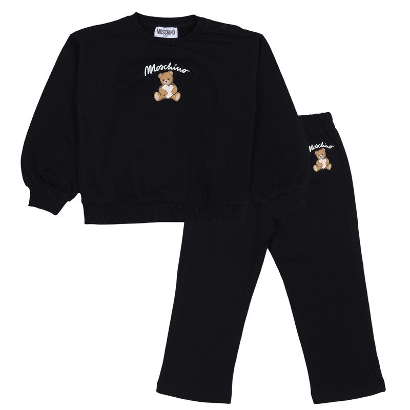 This Adorable Moschino Kids Tracksuit Is A Cozy And Stylish Choice For Your Little One. In A Clean Black Color, The Set Features The Brand'S Iconic Teddy Bear Motif On Both The Sweatshirt And Joggers. Made From A Soft And Comfortable Material, It Includes An Elasticated Waistband And Ribbed Cuffs, Ensuring A Snug And Secure Fit Perfect For All-Day Wear.