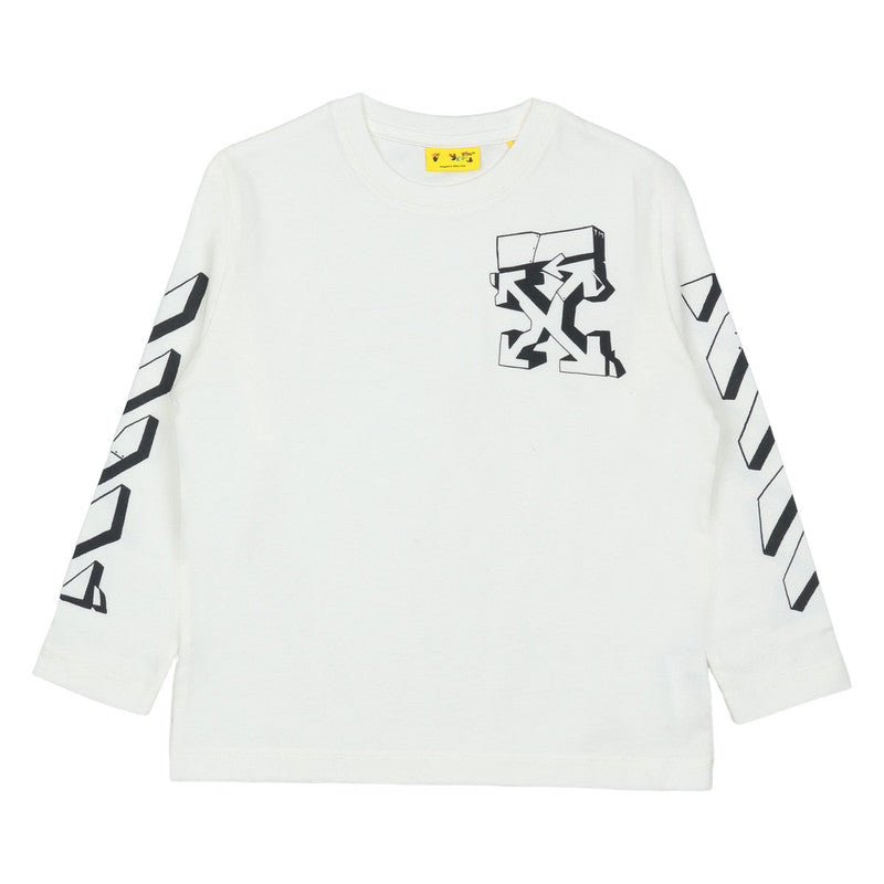 This sharp white long-sleeve tee features a striking, outlined 3D Arrows graphic on the chest and matching diagonal stripe graphics down the sleeves for a bold, contemporary look.