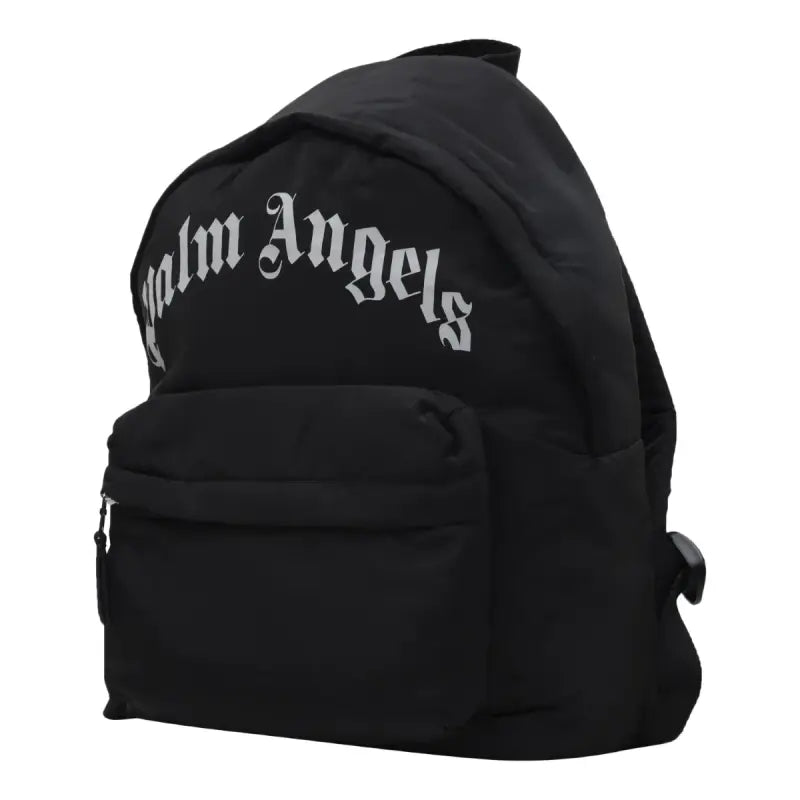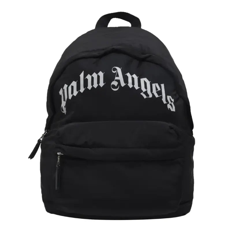 Backpack In Black With "Palm Angels" Curved Logo Printed In White On Front. Top Handle. Frontal Zipped Closure. Zipped Pocket On Front.