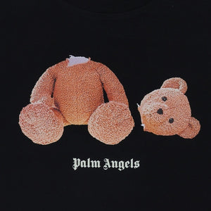 Black T-shirt by luxury Italian fashion brand Palm Angels, made in soft cotton jersey. This iconic piece features the brand's distinct Bear graphic print on the front, alongside the bold Palm Angels logo.
