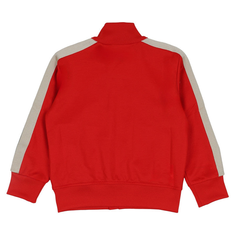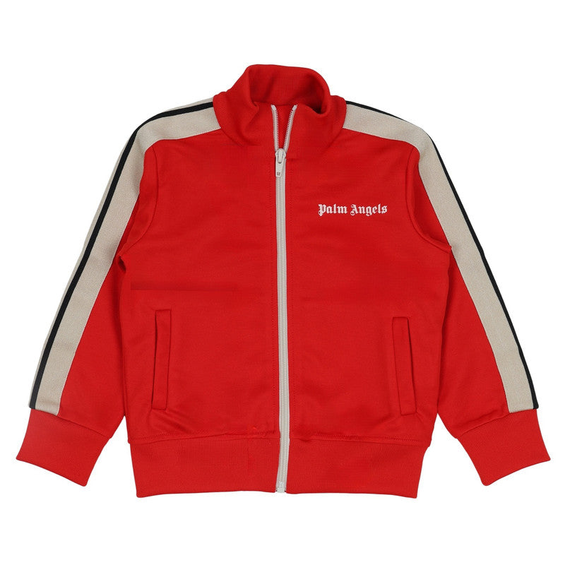 Rendered in vibrant red, this Palm Angels Kids track jacket is framed with contrasting white stripes across the sleeves. The cotton garment is complete with a signature logo print at the chest.