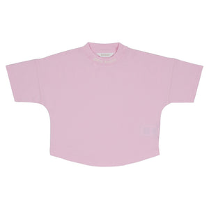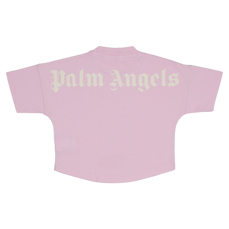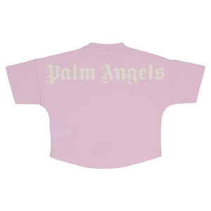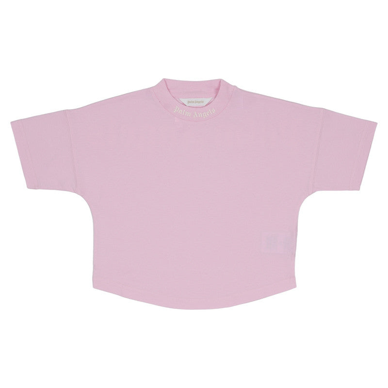 A chic, modern staple for their wardrobe. This soft pink Palm Angels kids' crop tee features a relaxed fit and a subtle logo print around the mock neck. High-fashion comfort for everyday style.