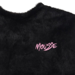 Embrace cozy glamour with this Mousse black fuzzy sweatshirt! Featuring a super soft faux-fur texture and a pink embroidered logo, it's perfect for a plush and stylish look.