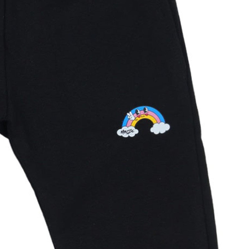 Find the treasure of comfort in these Mousse Black Rainbow Joggers! Featuring a cheerful rainbow graphic, these classic black pants are perfect for bringing a little bit of magic to everyday play.