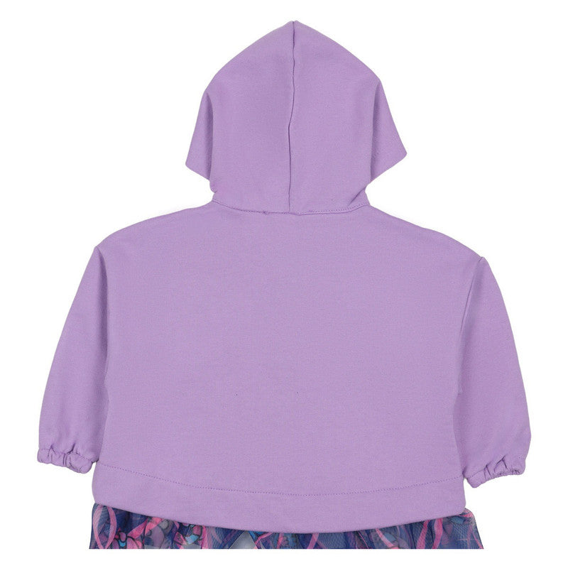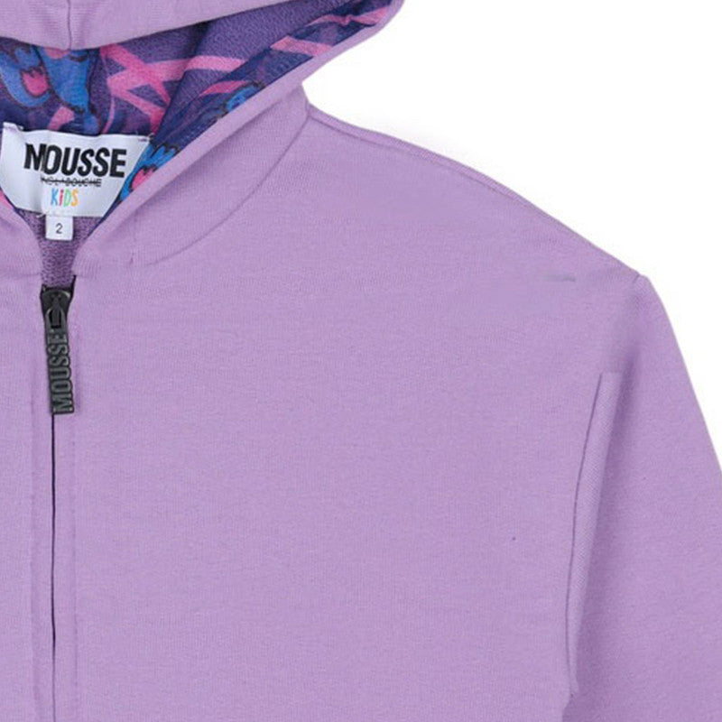 The Mousse Lilac Koala Tulle Hoodie is an adorable style statement. This lilac cotton jacket features a cozy hood and is beautifully finished with a vibrant, flared tulle hem for a fun, layered look.