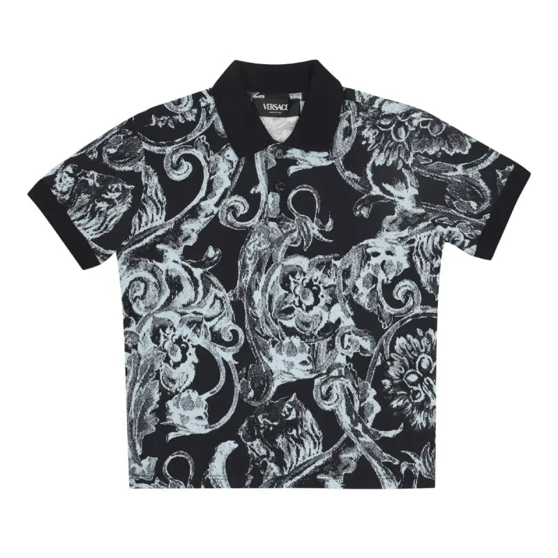 A short sleeved polo shirt for little ones with a stencilled rendition of the Barocco motif, made from cotton piqué.