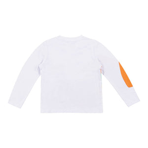 White organic cotton top for little boys by Stella McCartney Kids. Made in comfortable jersey, it has a cute snail printed on the front and one sleeve in blue, orange and green. Easy to put on and take off, it has popper fastenings on one shoulder.