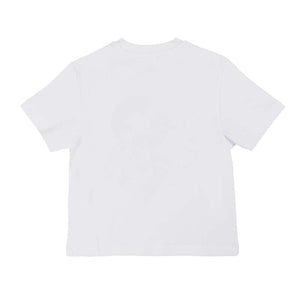 White T-shirt from Stella McCartney Kids. Made of cotton, this short sleeve design features a multicolored logo pattern and ribbed crew neck.